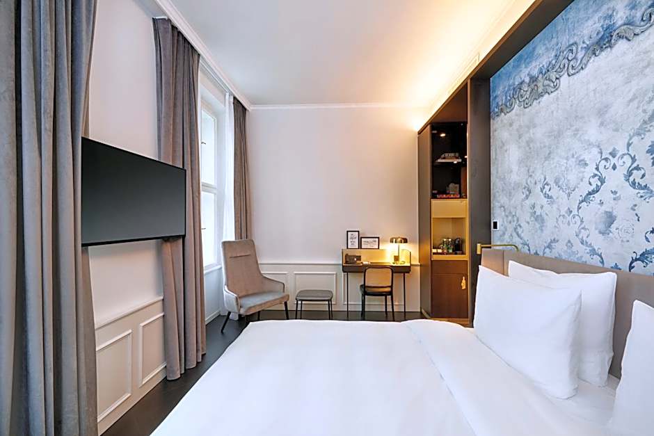 The spacious double room offers air conditioning, soundproof walls, as well as a private bathroom featuring a walk-in shower and a hairdryer. The double room features parquet floors, a seating area with a flat-screen TV, a mini-bar, a tea and coffee maker, as well as a wardrobe. The unit offers 1 bed.